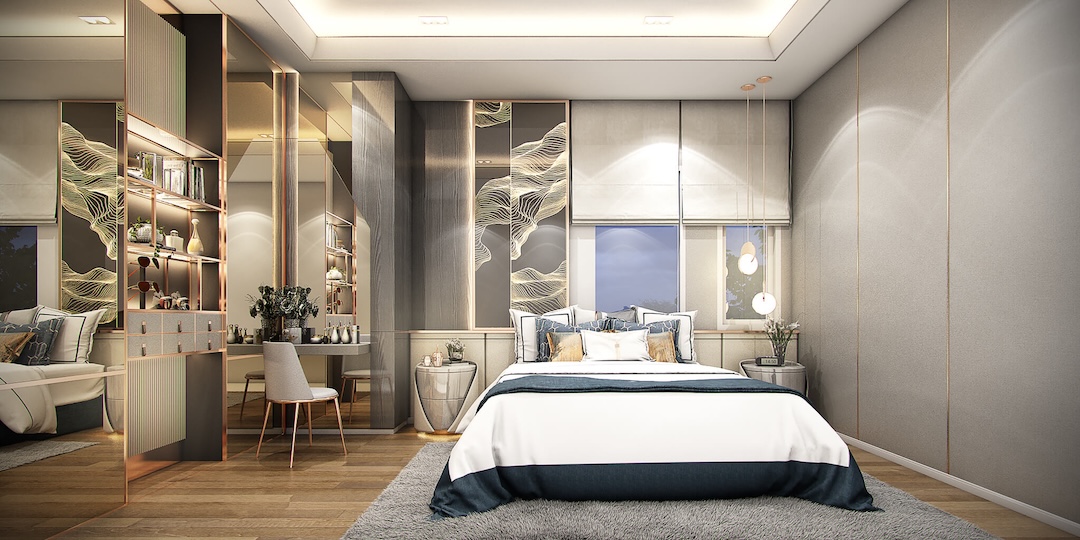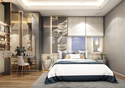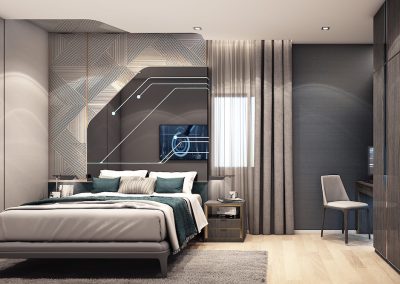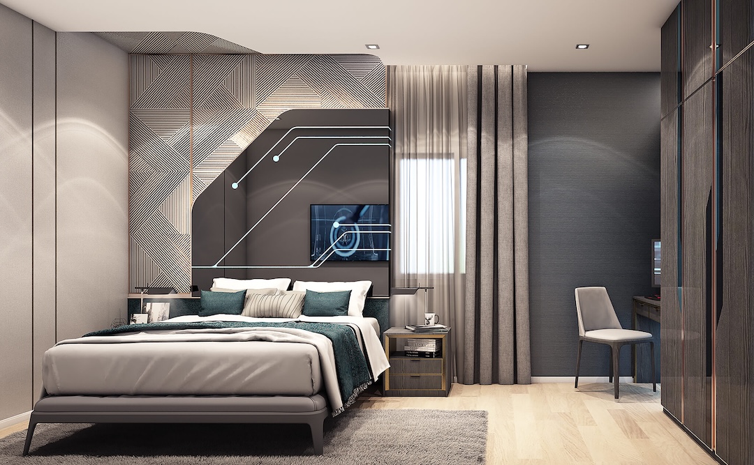 3 Master Bedroom ห้องอเนกประสงค์ชั้นล่างสำหรับผู้สูงอายุ มุม Semi-Outdoor พร้อมที่จอดรถ 2 คัน ดีไซน์โมเดิร์นสไตล์ Silicon Valley ที่สง่างาม