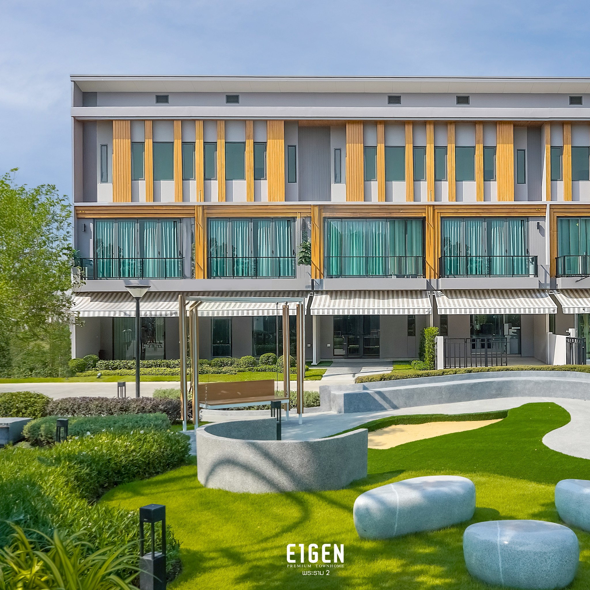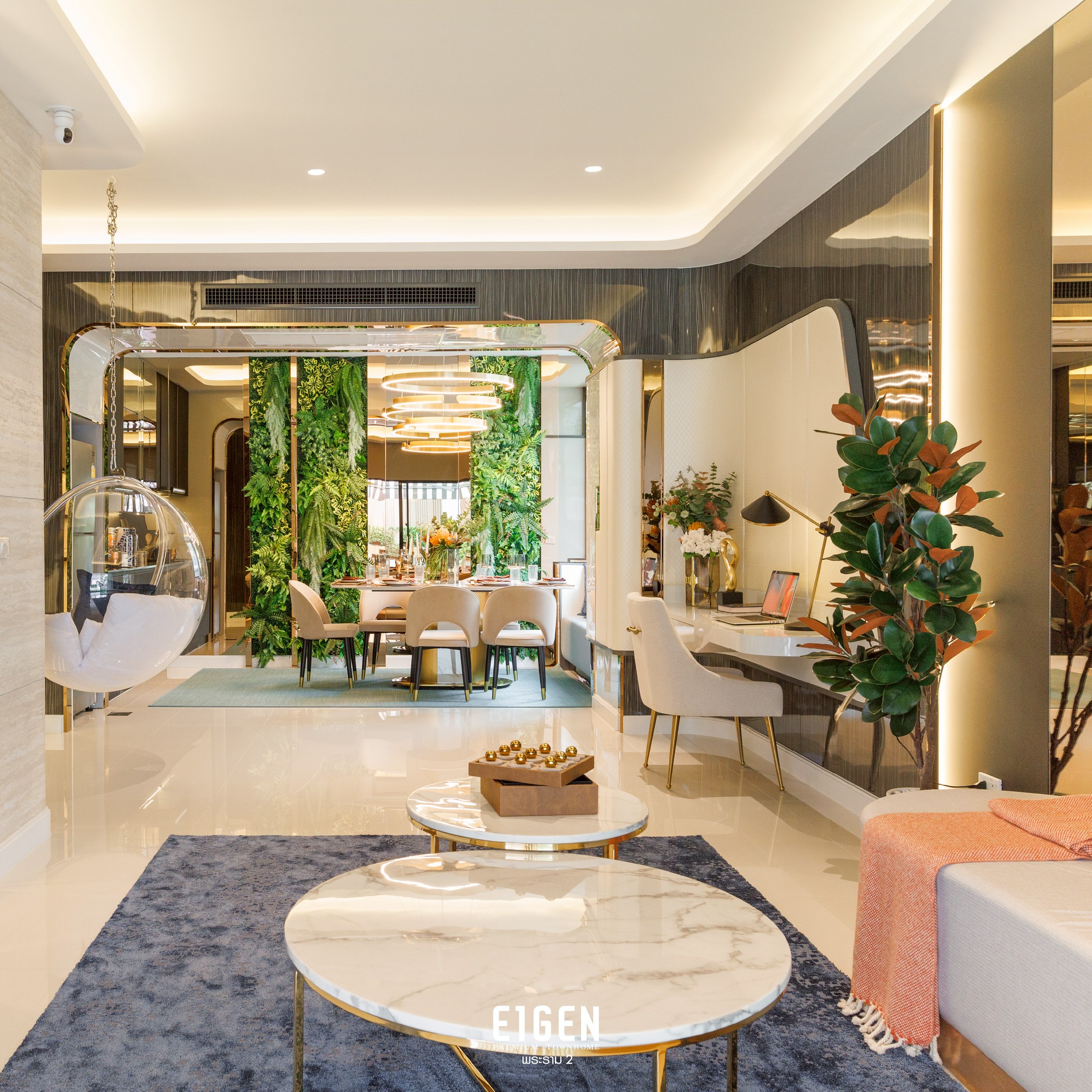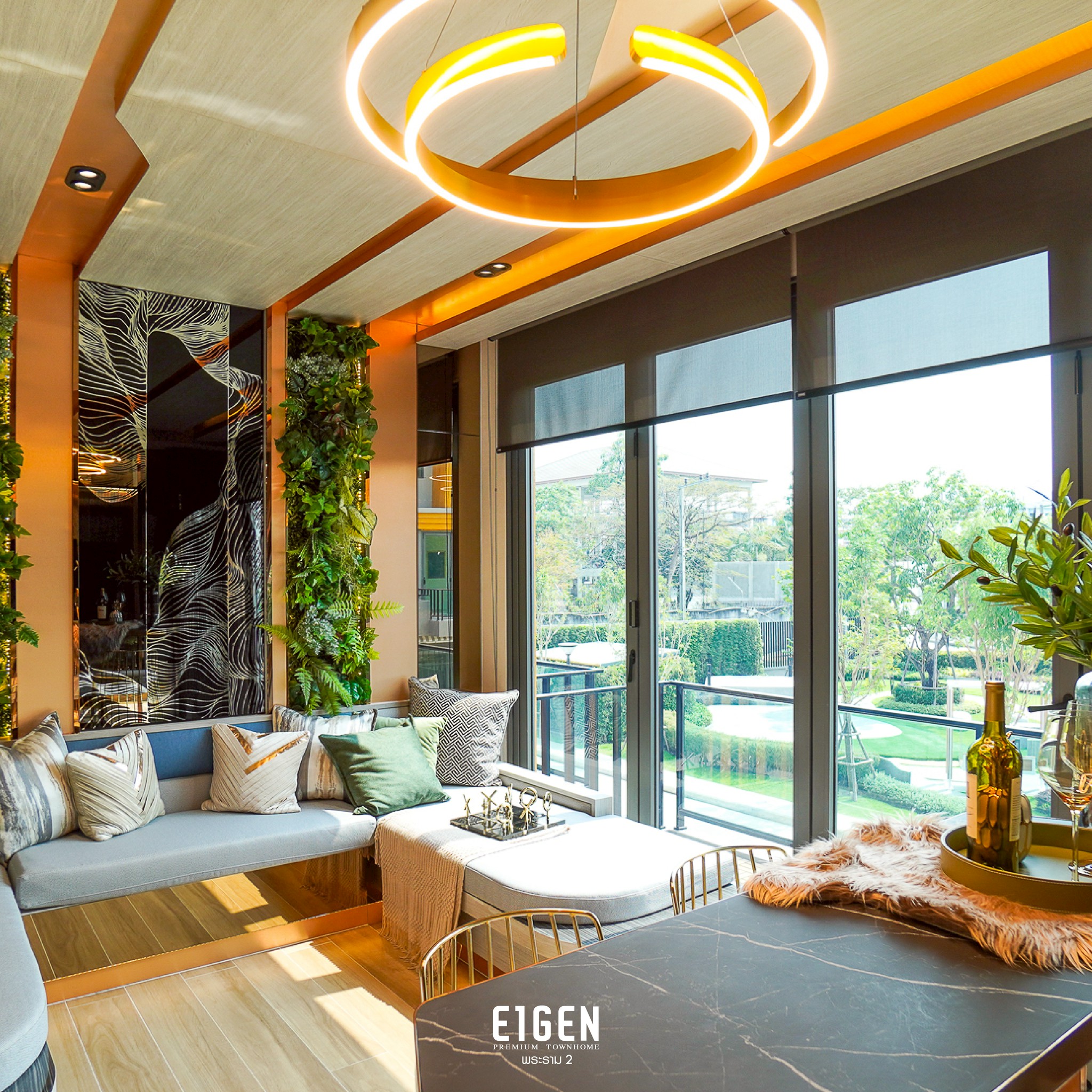 นี่คือพื้นที่ความสุขของคุณและครอบครัว EIGEN พรีเมียมทาวน์โฮม 3 ชั้น ทำเลพระราม 2 ใกล้เมือง—ชั้น 2 ออกแบบให้ห้องรับแขกเชื่อมระเบียง โปร่งสบายรับแสงธรรมชาติ